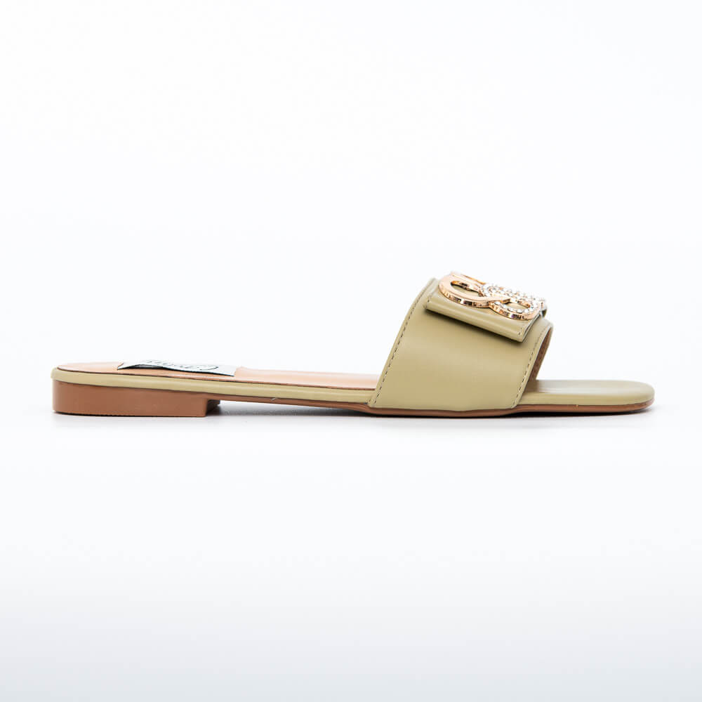 Mule mint with individual ornament with strass . Leather  lining . Height  10 mm .