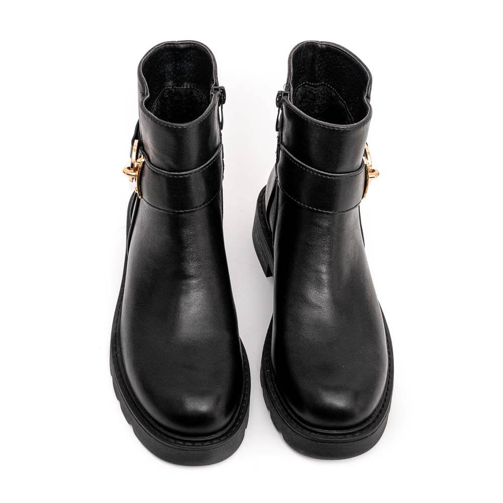 Black bike boots with gold ornament. Leather line. Zipper at the inner side.