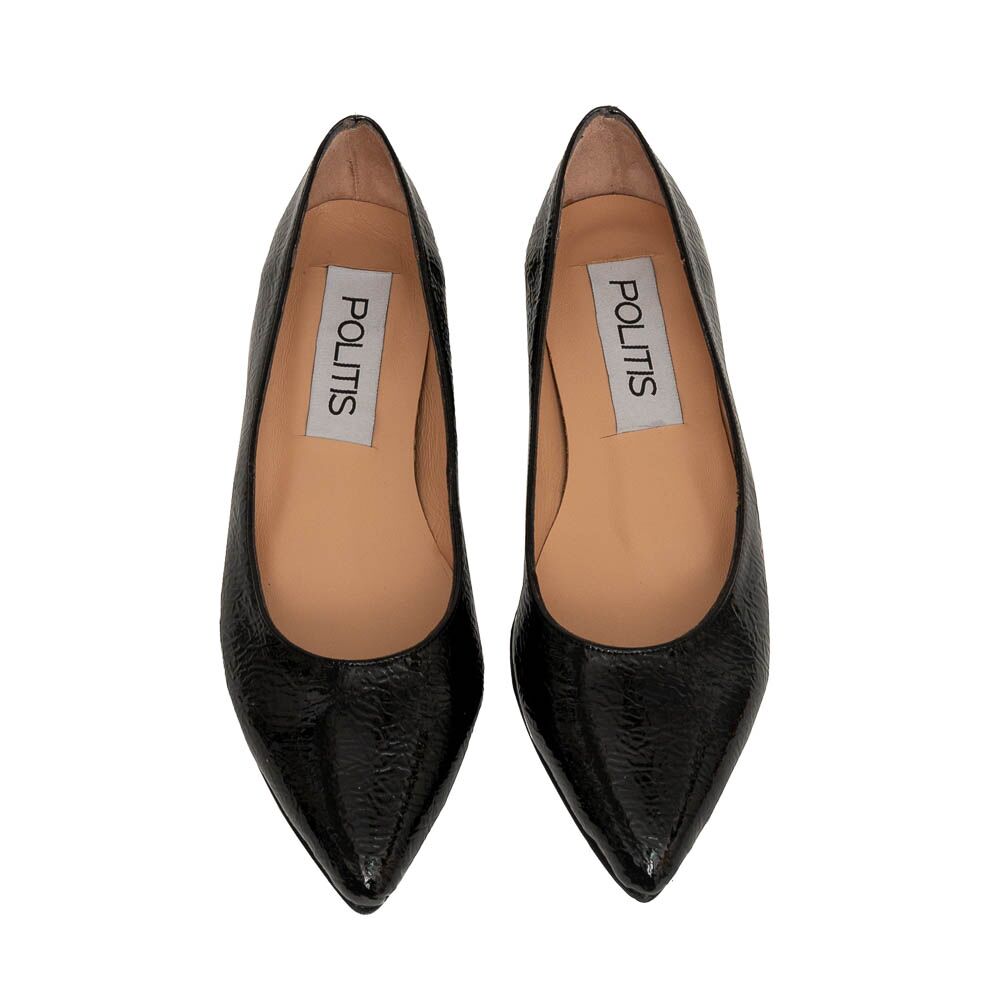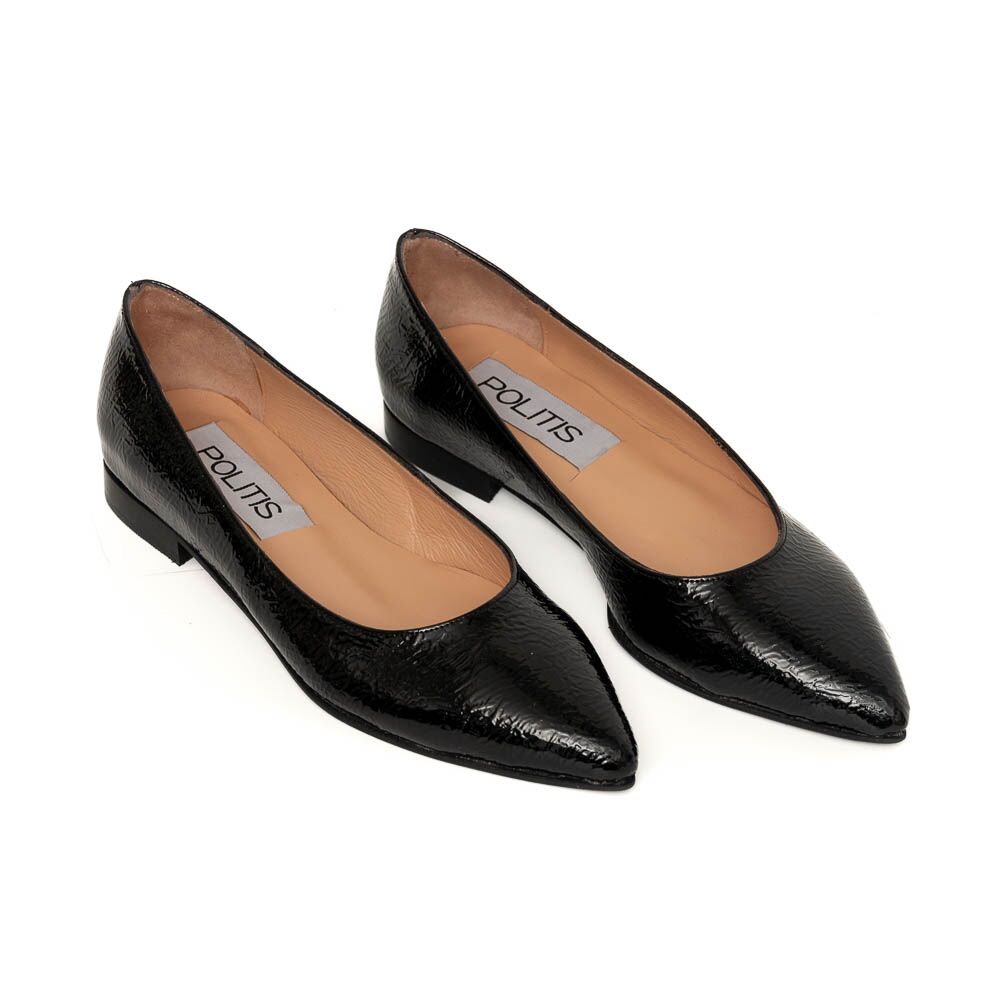 POLITIS Black pointed patent naplak leather ballerina