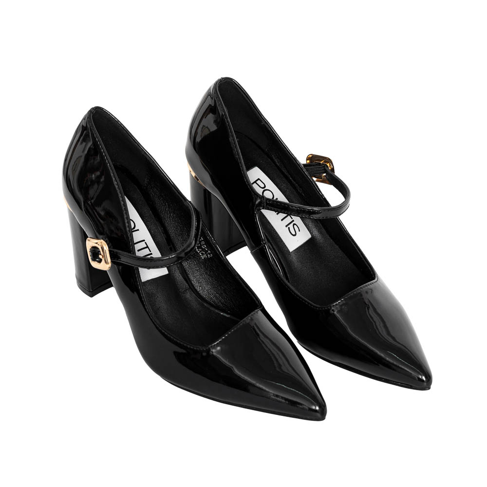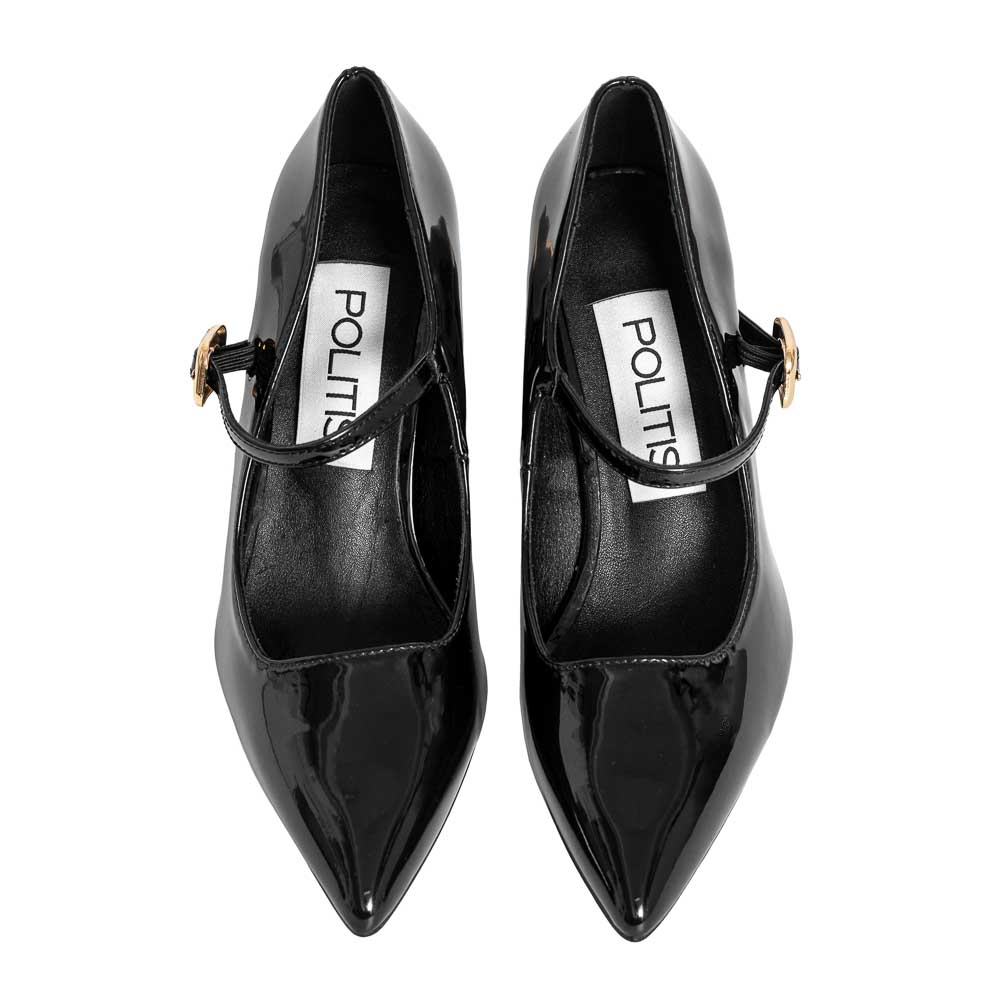 Black pointed patent naplak pump Mary Jane
