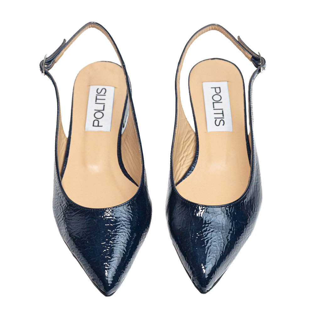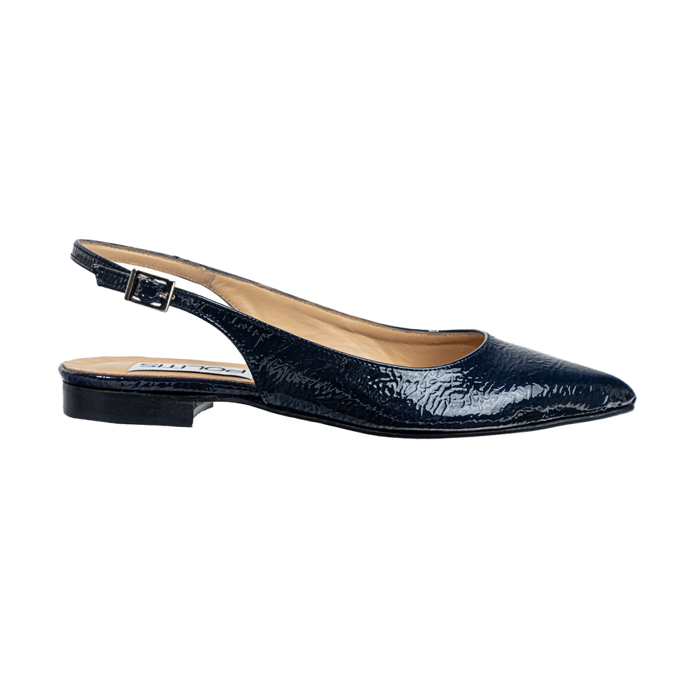 Blue pointed slingback naplak patent leather ballerina