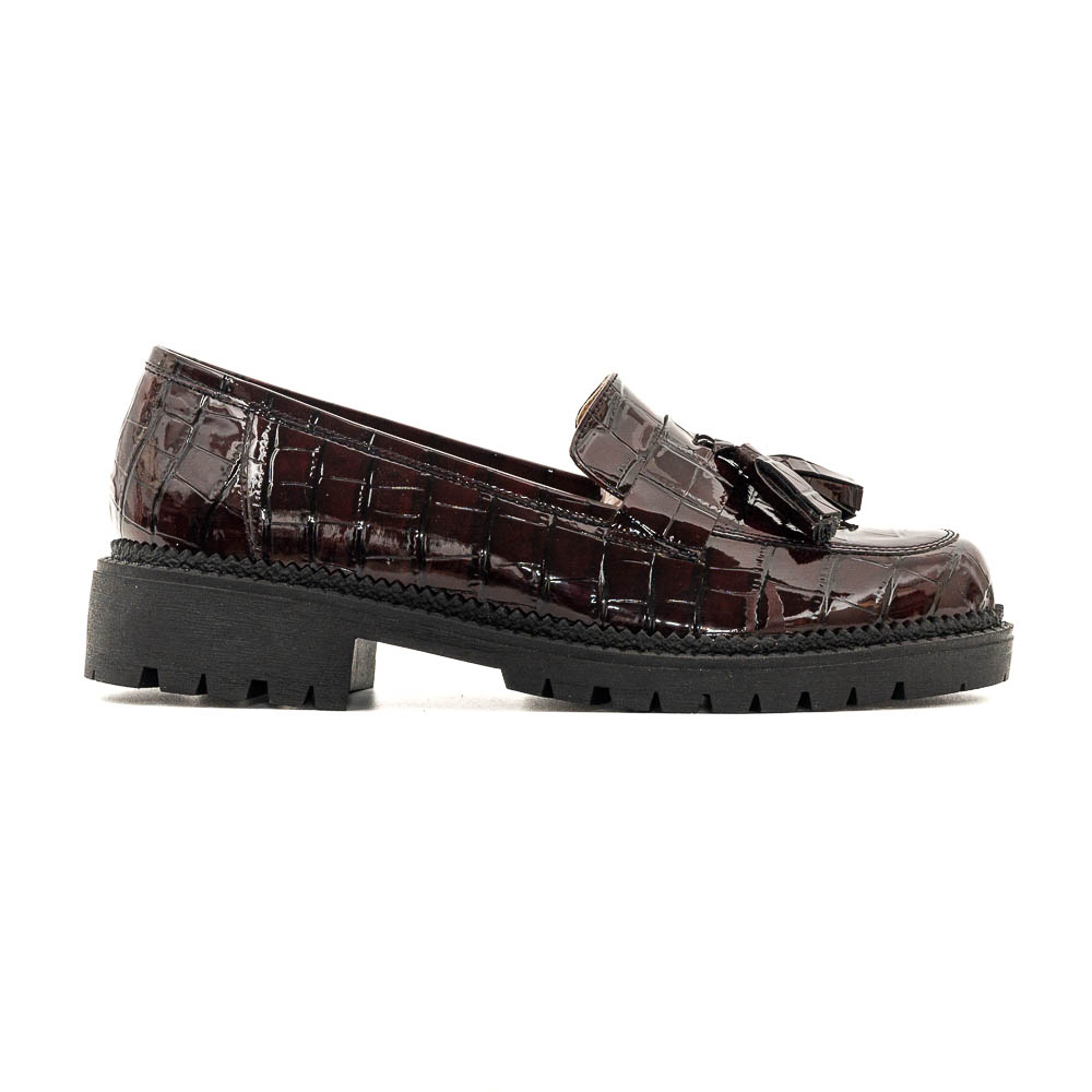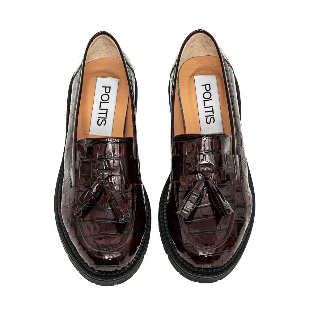 POLITIS Bordeaux croco patent leather moccasins with tassels