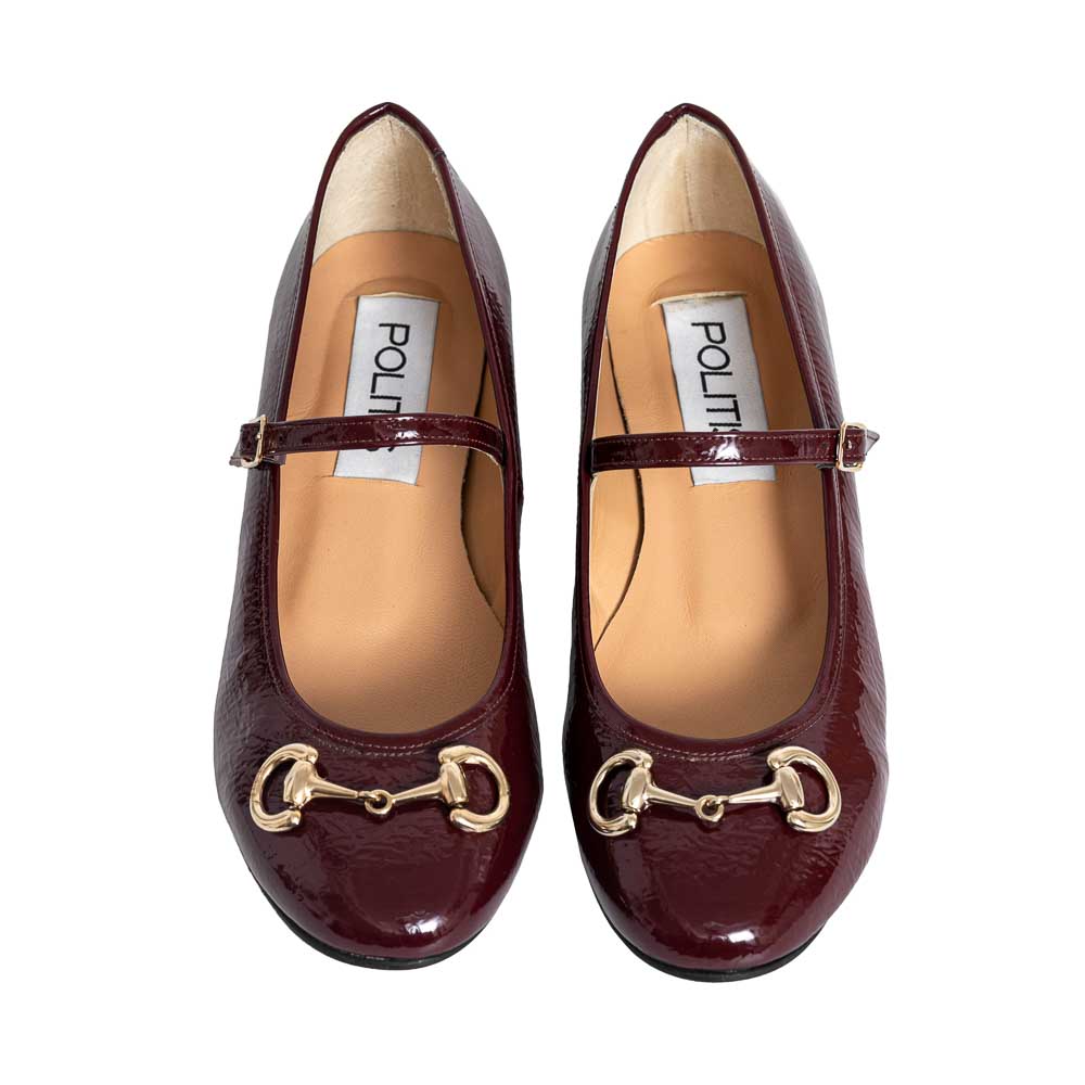 Bordeaux patent naplak leather ballerina Mary Jane with gold ornament