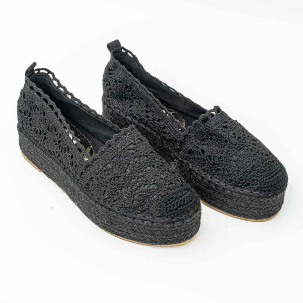 Εσπαντρίγιες από μαύρη δαντέλα . Δερμάτινο πατάκι .