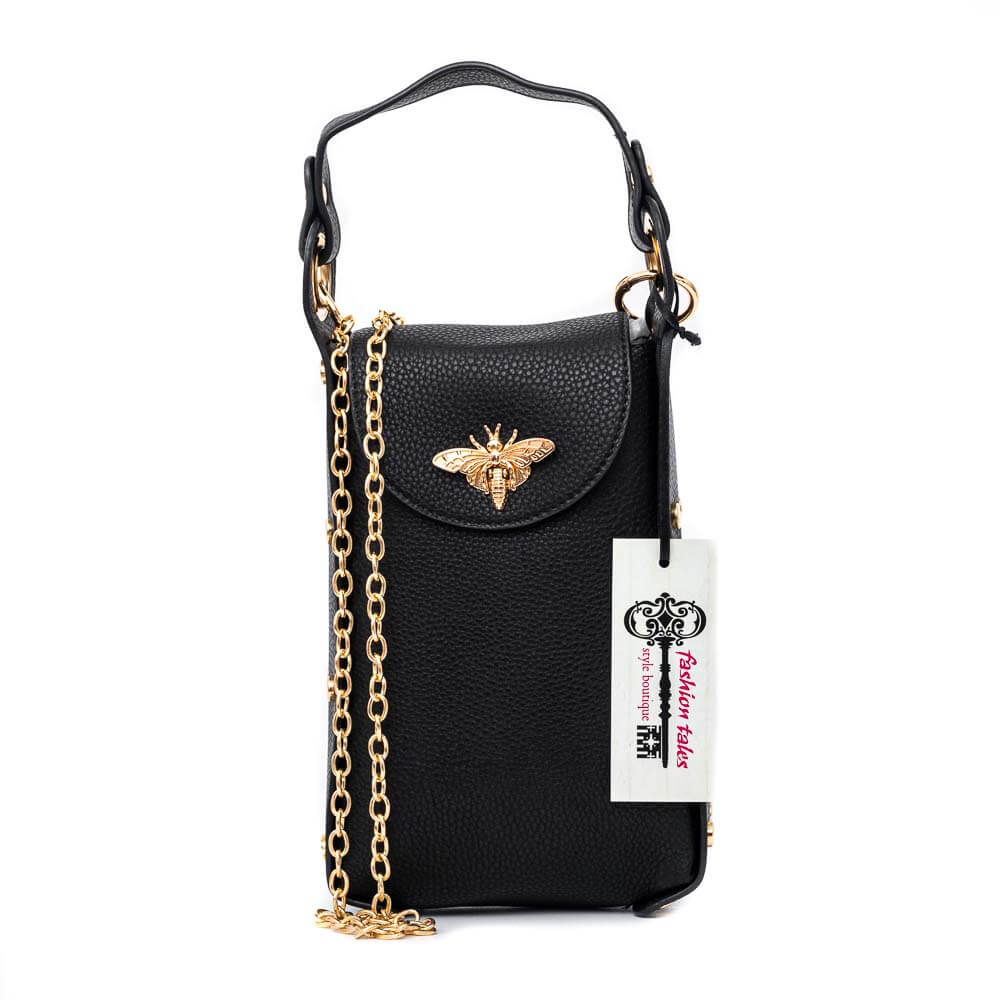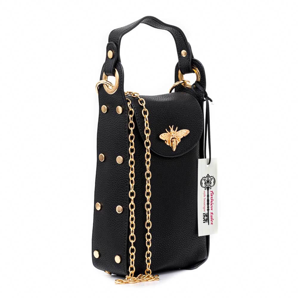 Μαύρος ταχυδρόμος με χρυσή αλυσίδα και εντυπωσιακό χρυσό διακοσμητικό . Διαστάσεις : Μήκος 15 εκατοστά / Ύψος 23 εκατοστά / Φάρδος 7 εκατοστά
