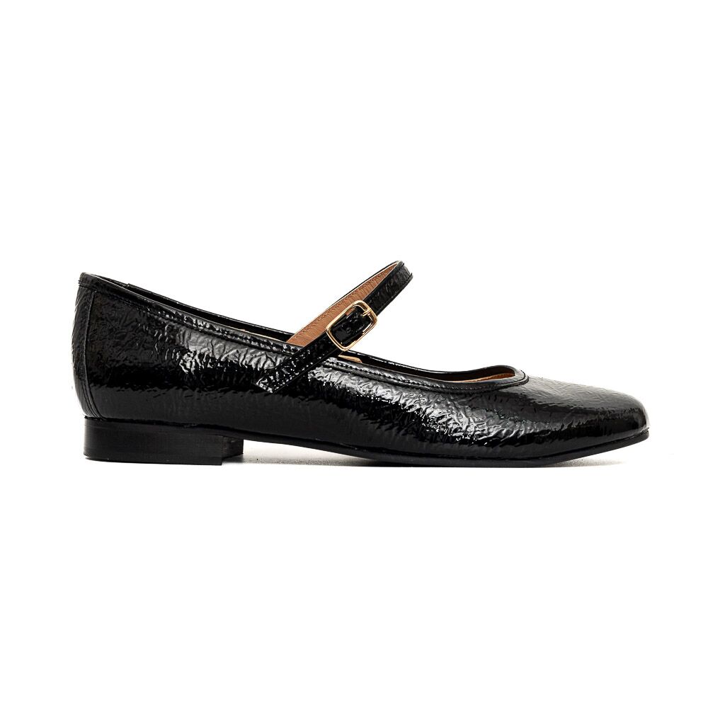 Μαύρες μπαλαρίνες Mary Jane σε σπαστό λουστρίνι .