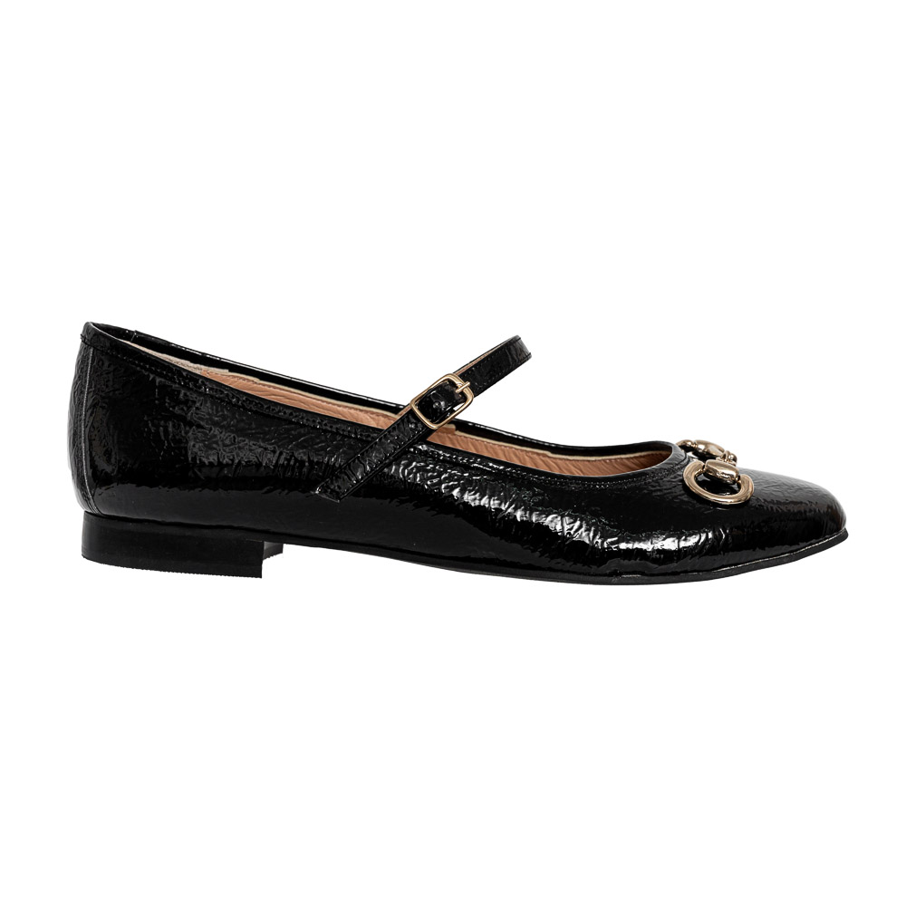 Μαύρη σπαστό λουστρίνι μπαλαρίνα Mary Jane