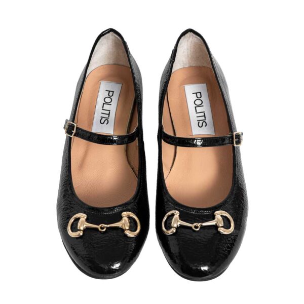 Μαύρη σπαστό λουστρίνι μπαλαρίνα Mary Jane με χρυσό διακοσμητικό