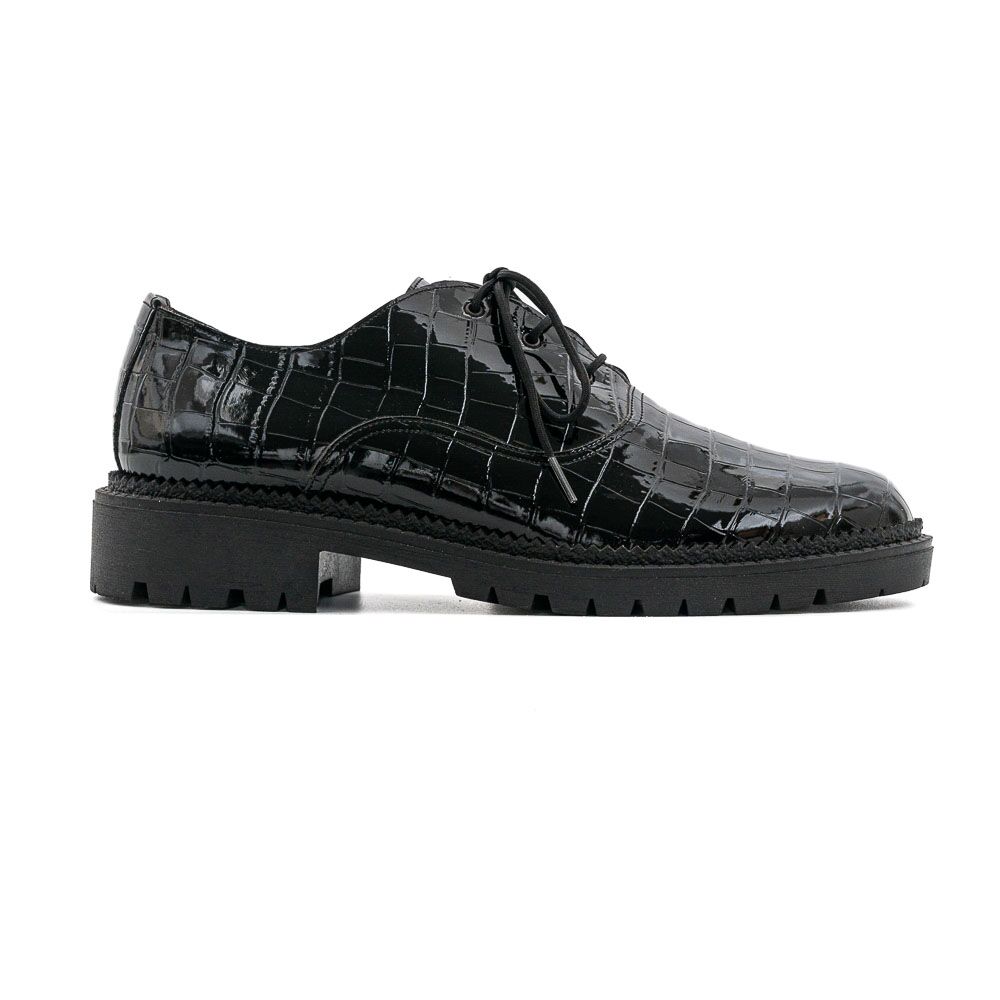 Μαύρο κροκό δερμάτινο δετό oxford λουστρίνι