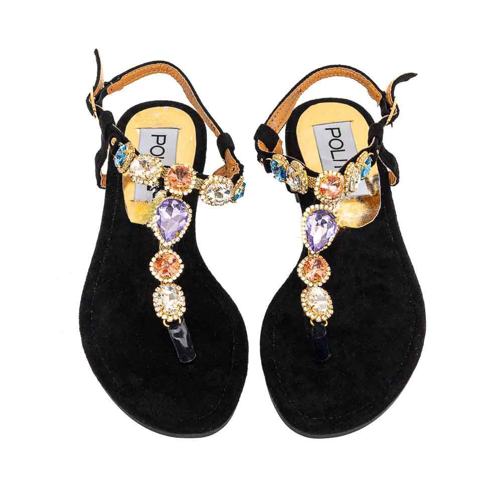 Μαύρο σανδάλι με πολύχρωμες πέτρες