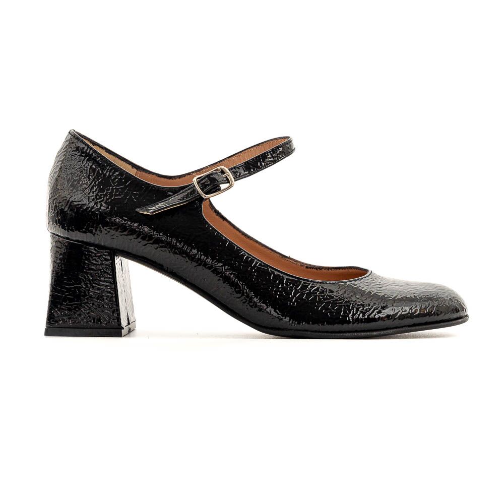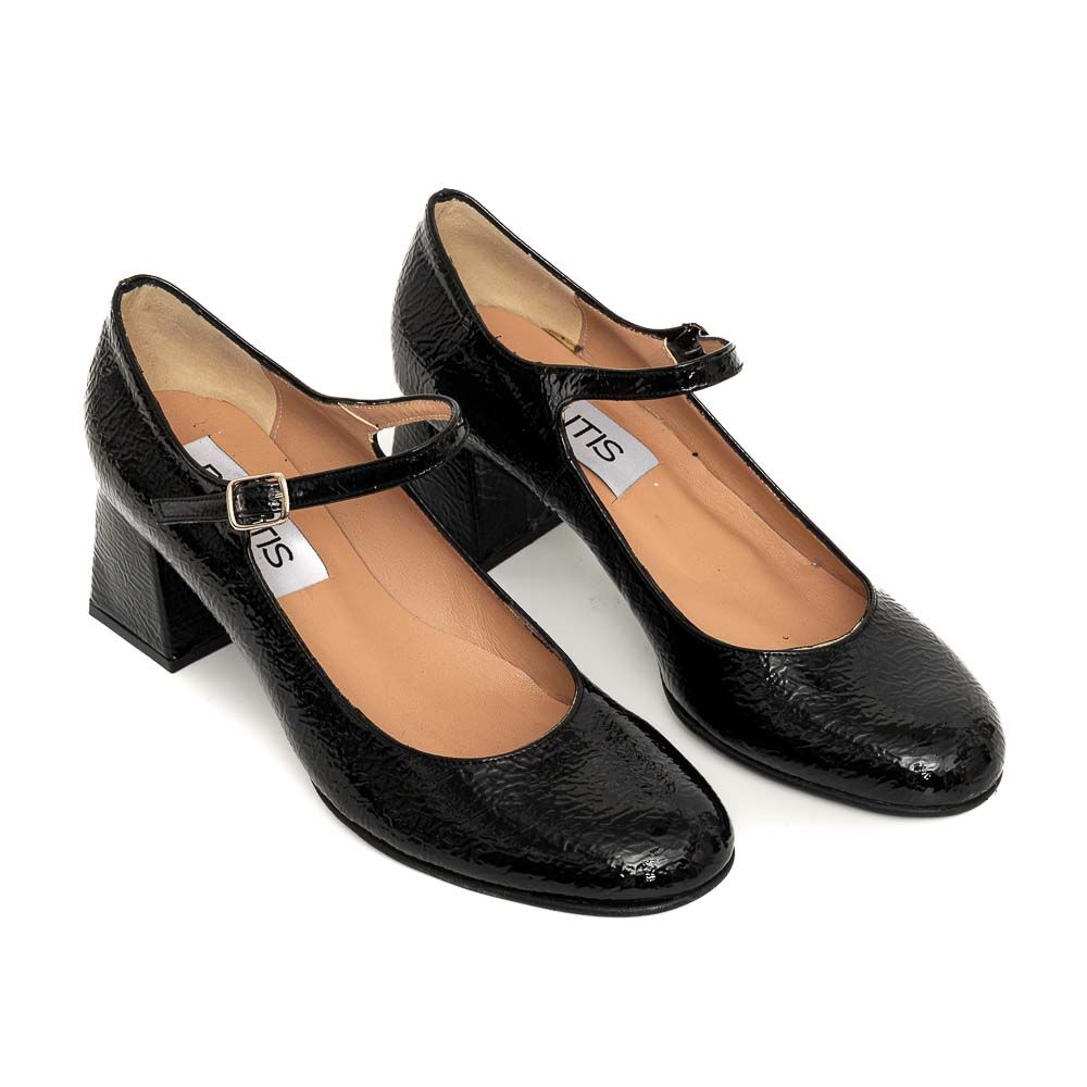 Μαύρη σπαστό λουστρίνι δερμάτινη γόβα Mary Jane