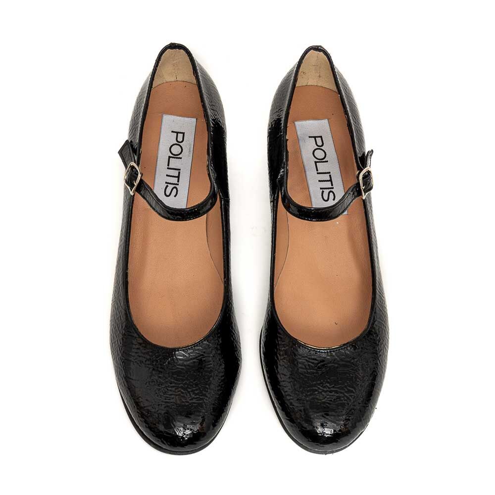 POLITIS Μαύρο σπαστό λουστρίνι δερμάτινη γόβα Mary Jane