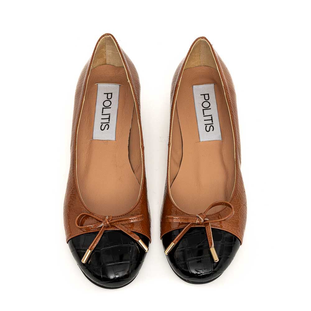 POLITIS Ταμπά σπαστό λουστρίνι δερμάτινη μπαλαρίνα με μαύρο κροκό
